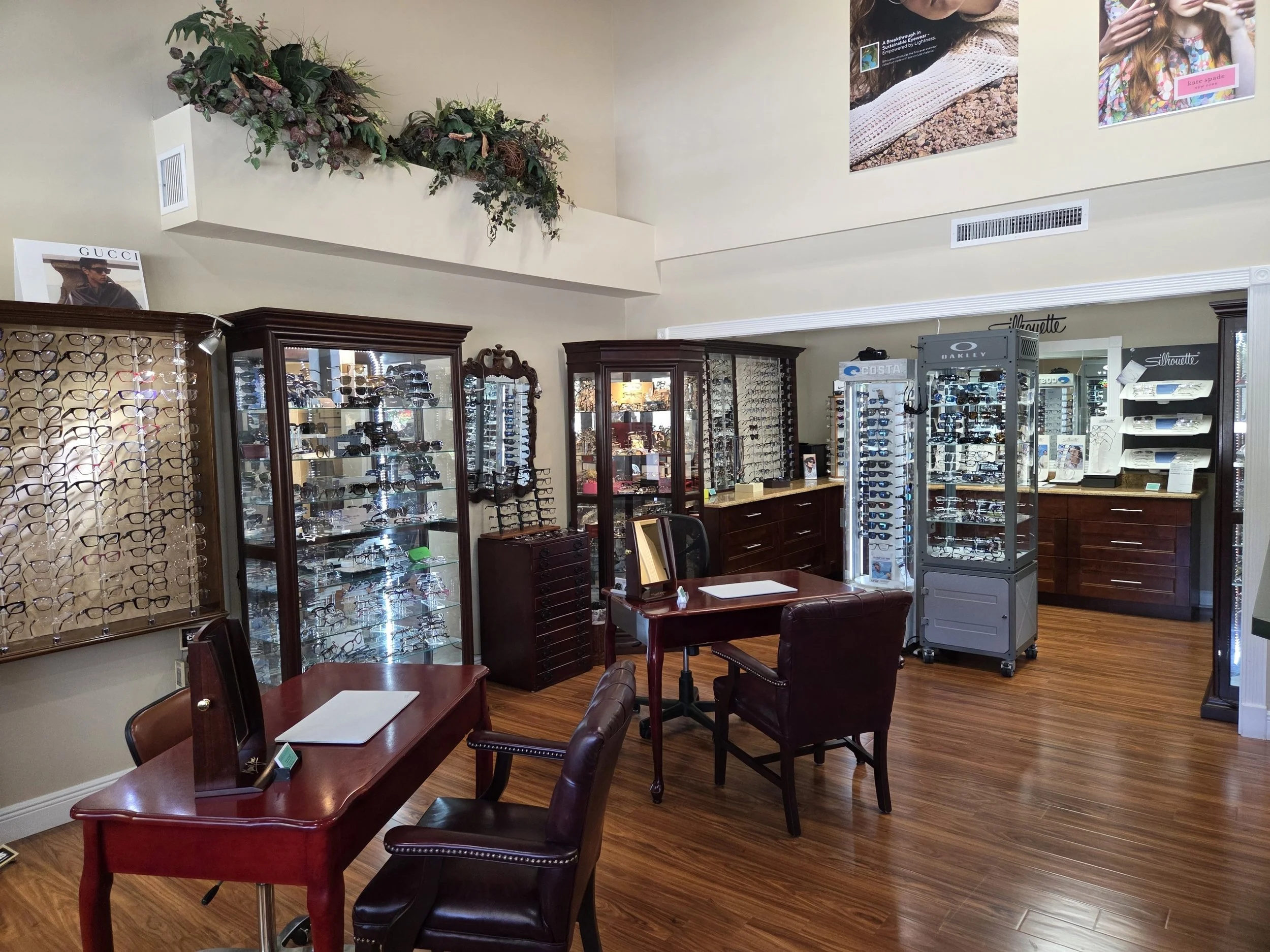 We carry over 1,000 prescription frames and sunglasses, including top brands like Gucci, Ray Ban, Maui Jim, Vera Wang, and more. We also offer stylish children's frames.